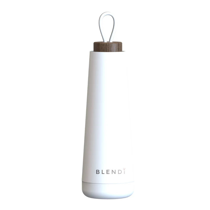 Introducing the perfect companion for your BLENDi portable blender recipes - a 24-hour cold retention water bottle. Made of durable stainless steel, it keeps liquids cold for 24 hours, hot for 6. Its compact design fits most cup holders, features a see-through screw-on cap, leak-proof natural wood lid, and has a 17oz capacity. Available in 4 colors, FDA approved and BPA-free.