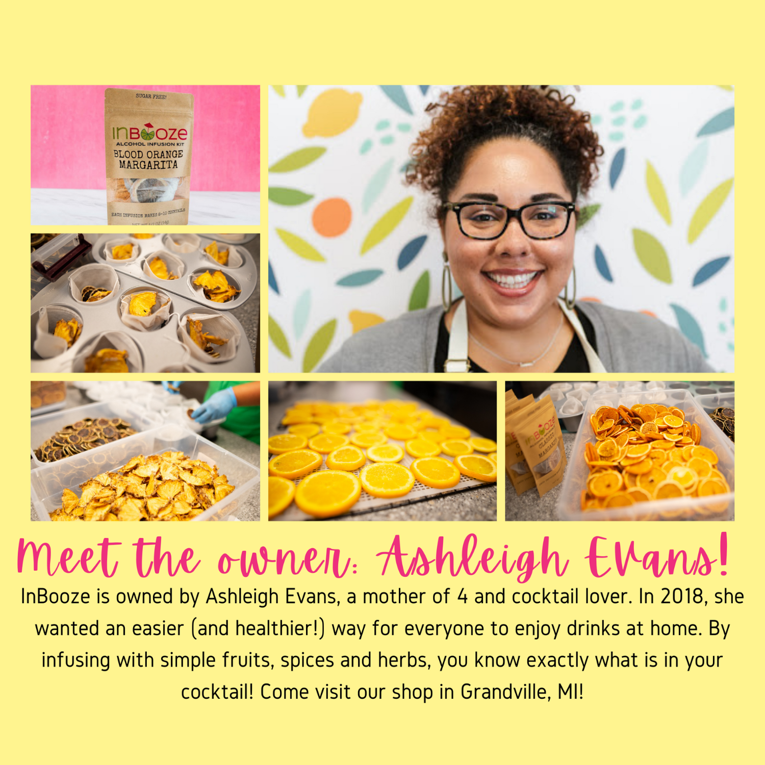 InBooze™ is owned by Ashleigh Evans, a mother of 4 and cocktail lover. In 2018, she wanted an easier (and healthier!) way for everyone to enjoy drinks at home. By infusing with simple fruits, spices and herbs, you know exactly what is in your cocktail!