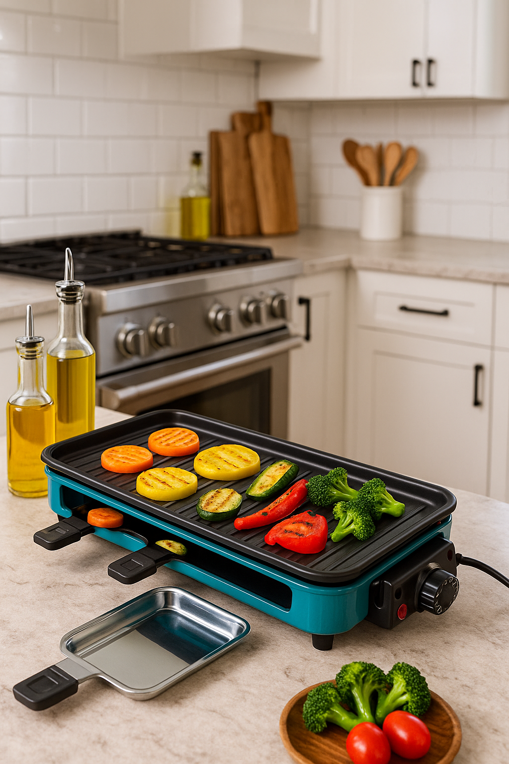 - Spacious cooking surface to prepare multiple foods at once, ideal for 3-7 people.