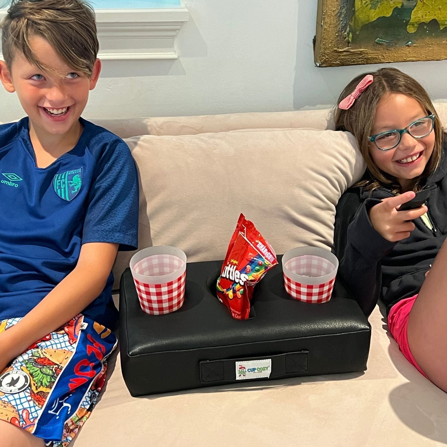 The Cup Cozy Pillow isn't "just" a cup holder, rather an all in one caddy of convenience to keep all your small essentials in one place: Drinks, snacks, remotes, video game controllers, cell phone/electronics, reading glasses and more!