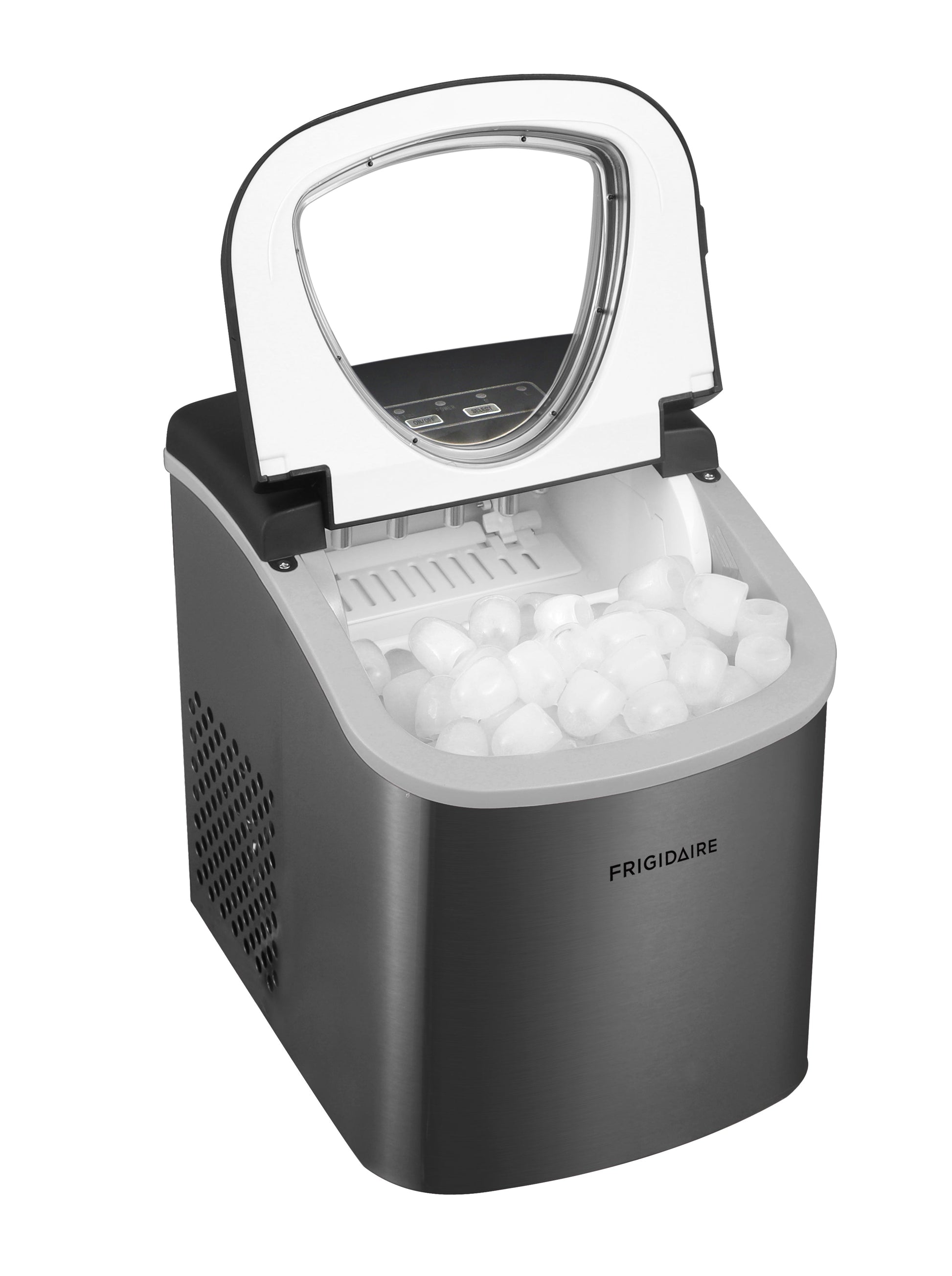 Sleek Design - Never run out of ice again with the Frigidaire Stainless Steel Ice Maker that produces up to 26 lbs. of ice per day. Elevate your space with its sleek black stainless steel countertop design that blends seamlessly with any kitchen, bar, office, or dorm.