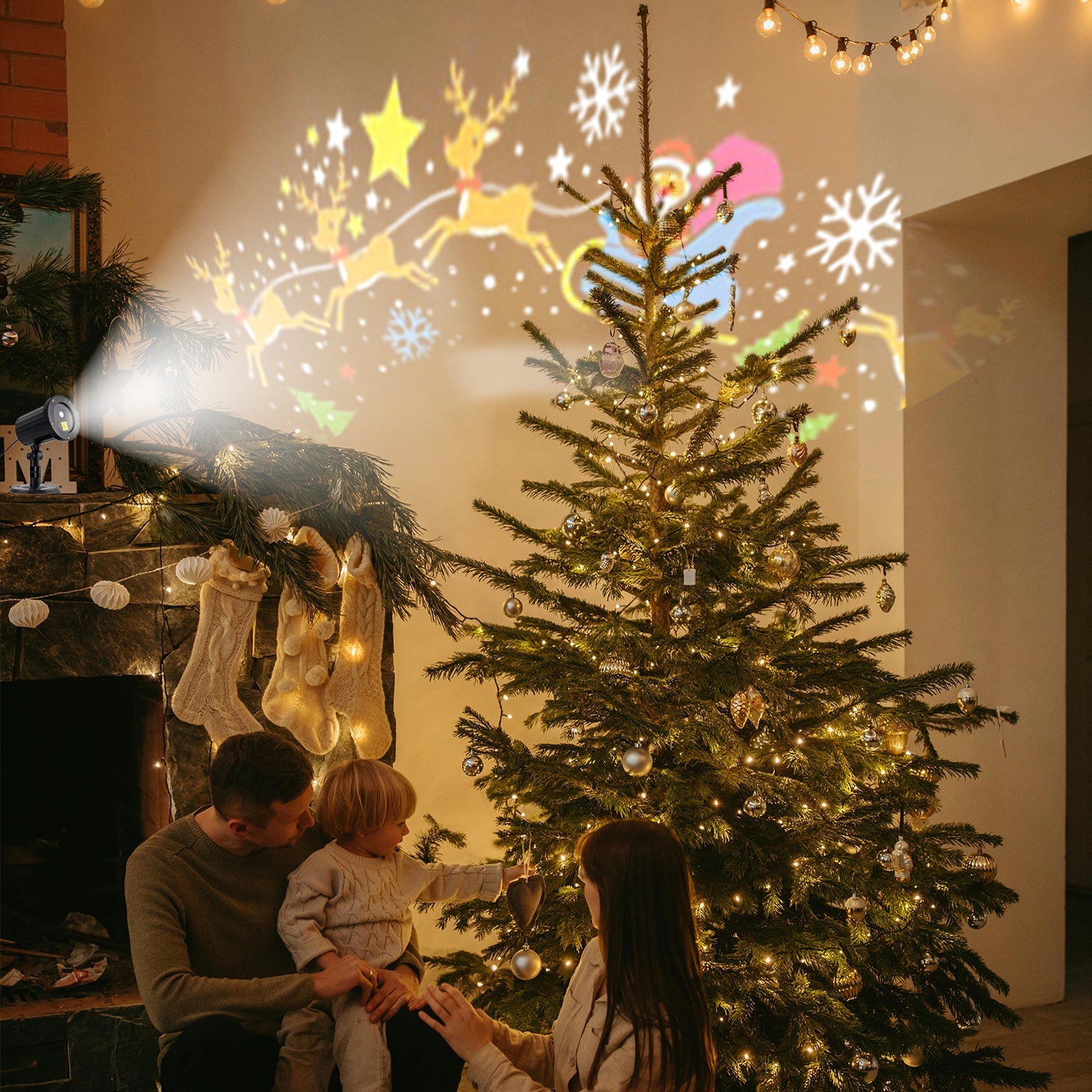 Dual Projection Modes: Features 10-color water wave effects and 16 holiday-themed pattern slides—use separately or together for a stunning festive display.