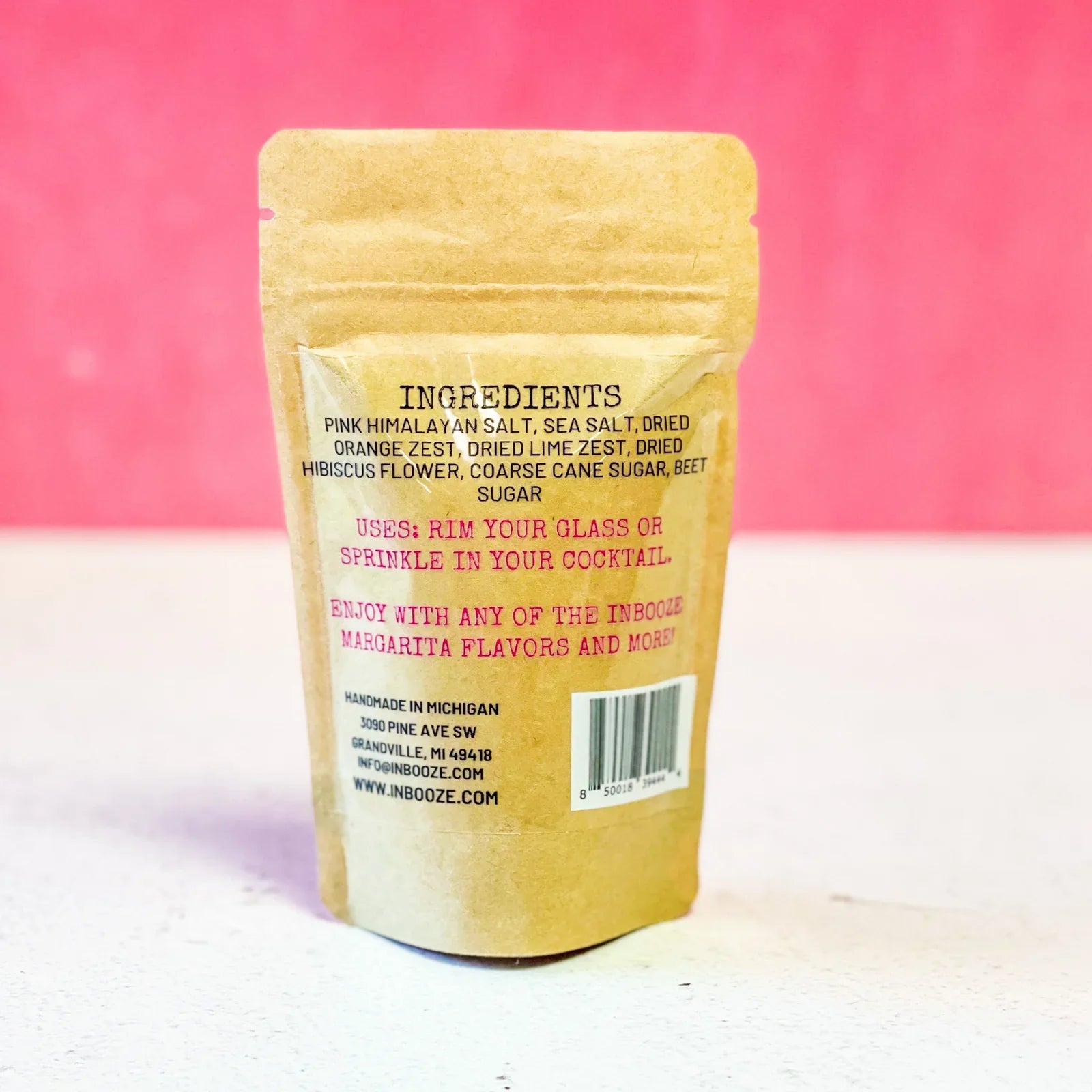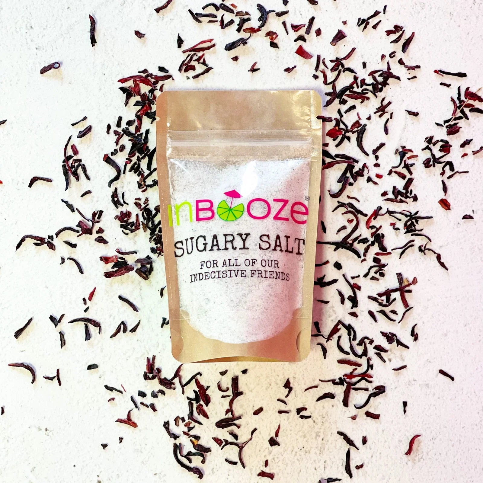 2 different sugars, 2 different salts are blended with dehydrated citrus and hibiscus leaves for an extra kick of sweetness. Perfect to rim margaritas, cosmos or any festive cocktail.