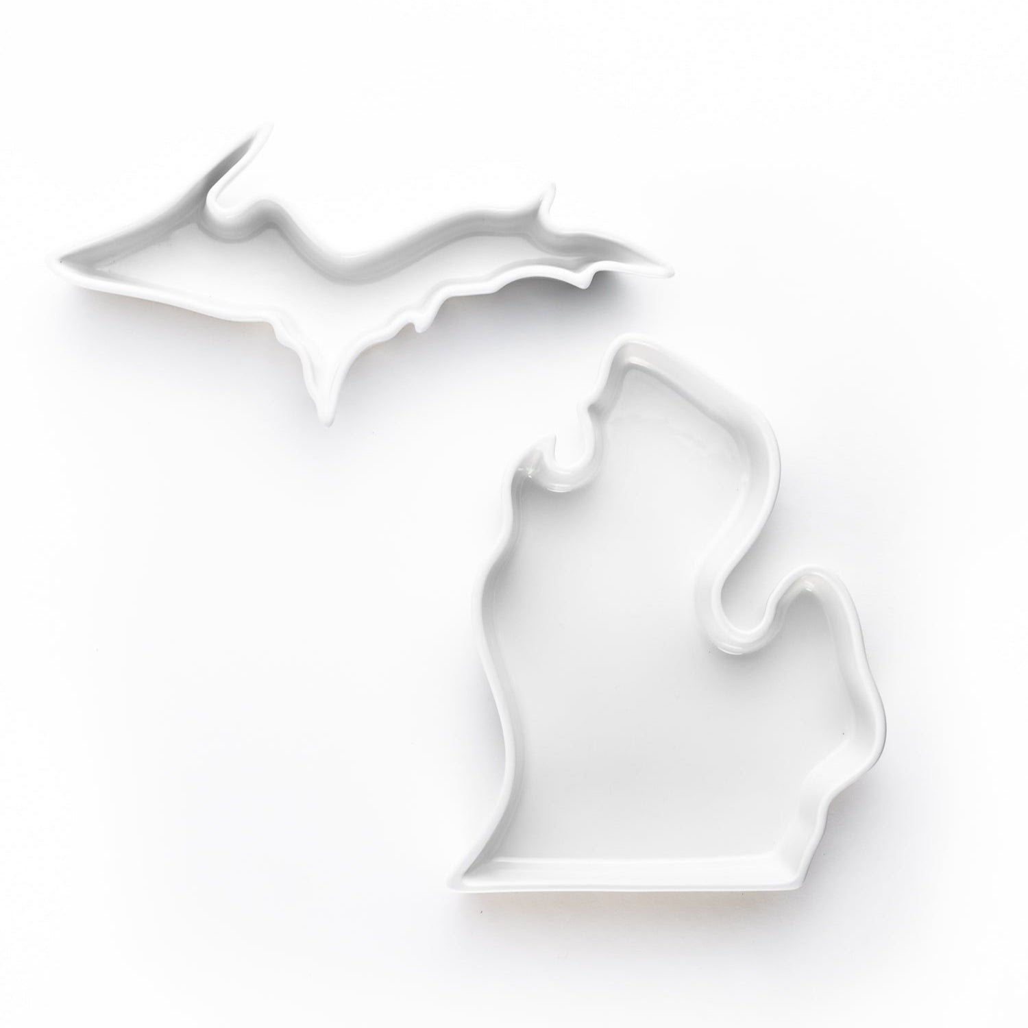 Embrace the heart and soul of the Great Lakes with our Michigan State Plate, a porcelain gem that captures the essence of Michigan's rich landscapes and vibrant culture. Not just another item in your kitchen, this plate is a slice of Michigan's heritage, bringing its charming peninsula right to your dining table. Each meal with this plate becomes a reminder of the state's unique beauty, from the shores of Lake Superior to the bustling streets of Detroit.